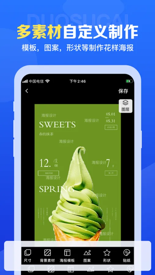 Provide massive poster templates, free customization, massive materials and random matching. Even if you are Xiaobai, you can easily start and customize your own posters according to your needs!