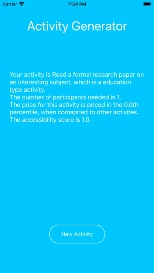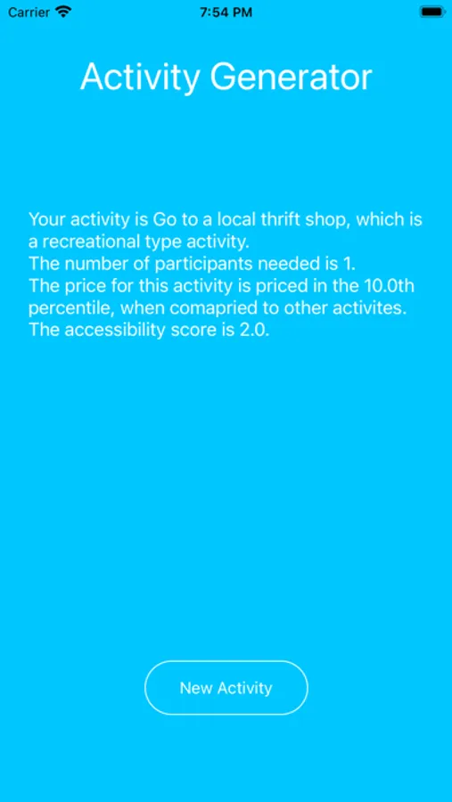 Sometimes all you need is an idea. When you’re bored and in a funk it’s hard to get out, this app is your attendant on the next flight out! Just click for a random activity that may just well start you on your next great adventure or hobby!