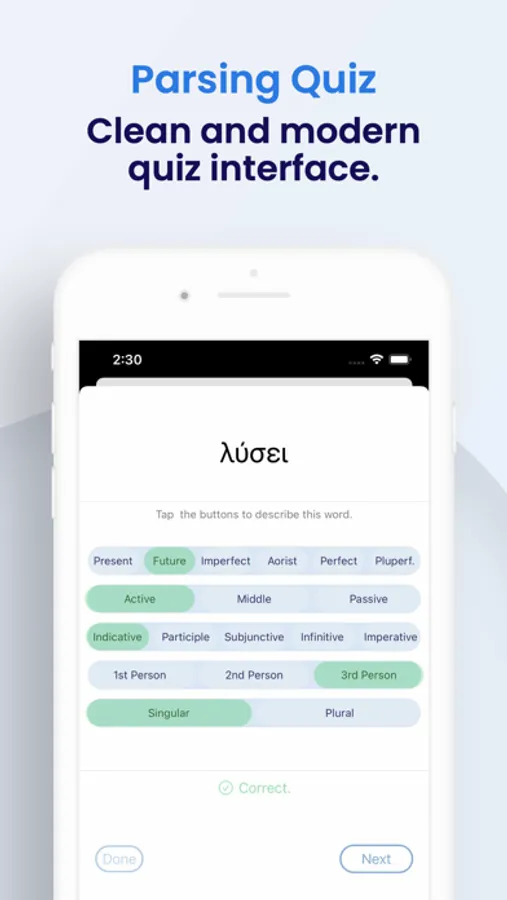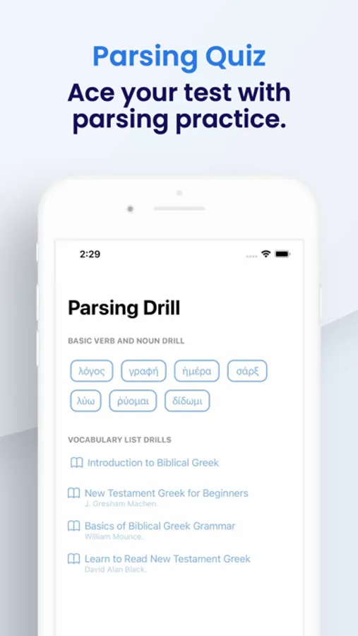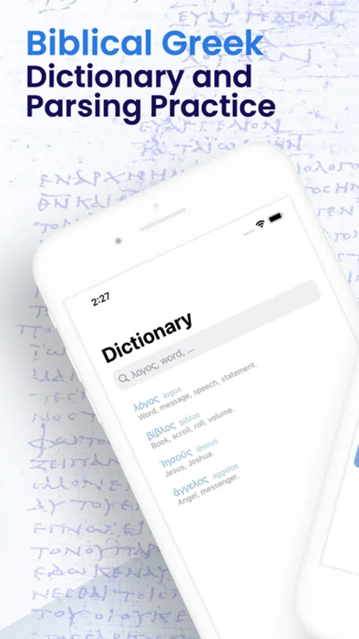 The Biblical Greek Dictionary and Parsing Practice app allows you to: