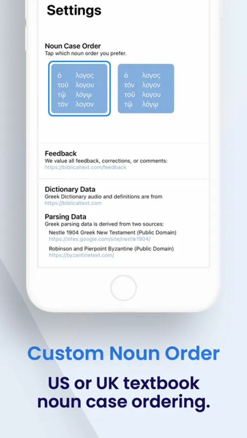 We hope this app will really help your Biblical Greek studies. Our vision is to create the best Biblical Greek study tools in the world, so all feedback and suggestions are warmly welcomed.