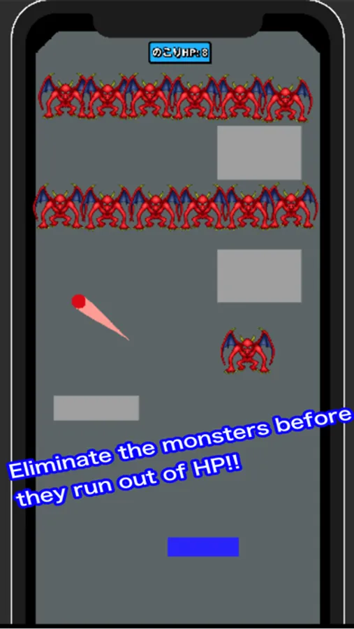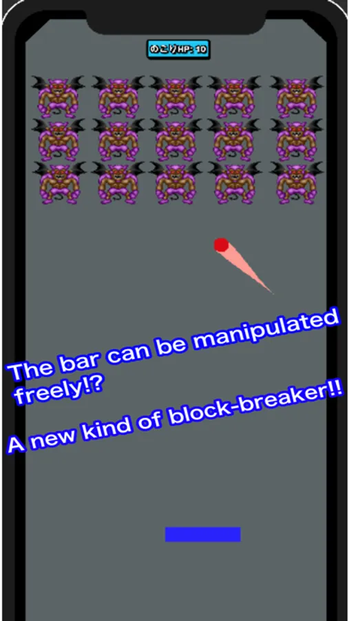 ・Move the bar freely and hit the ball on the monster to make it disappear.