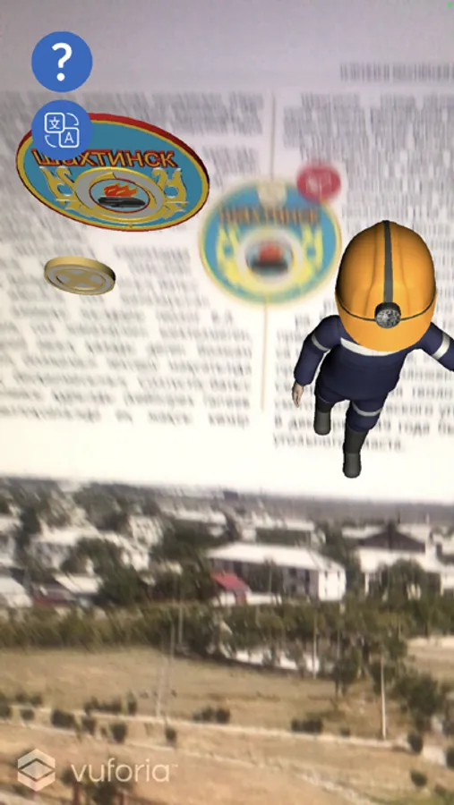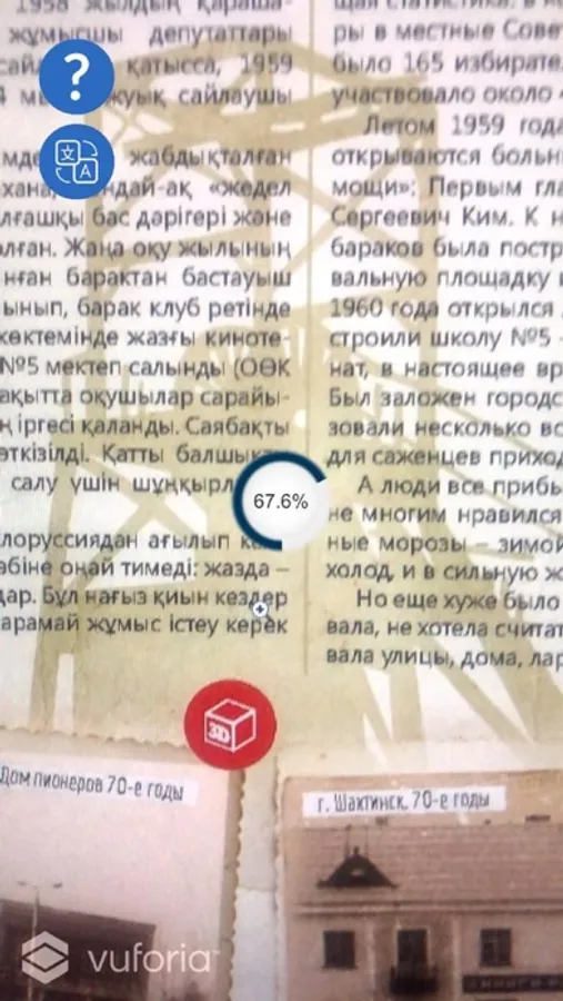 The mobile app with Augmented reality technology allows watching the video and 3D animation in the “Shakhtinsk is my favorite city” book. To watch the video download the mobile app and point the camera at the entire page of the book with the 3D icon. You will see a videо that you can watch while reading.