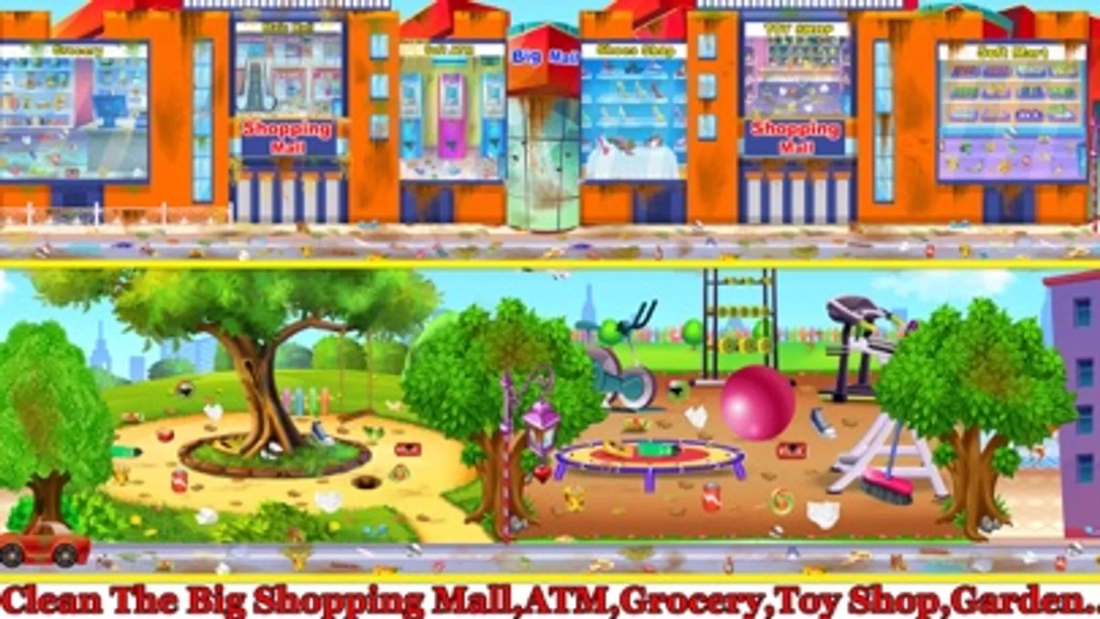 Clean the public garden to make this place playful for everyone and fix broken rides. You will clean up gym park too, repair gym equipment and much more.