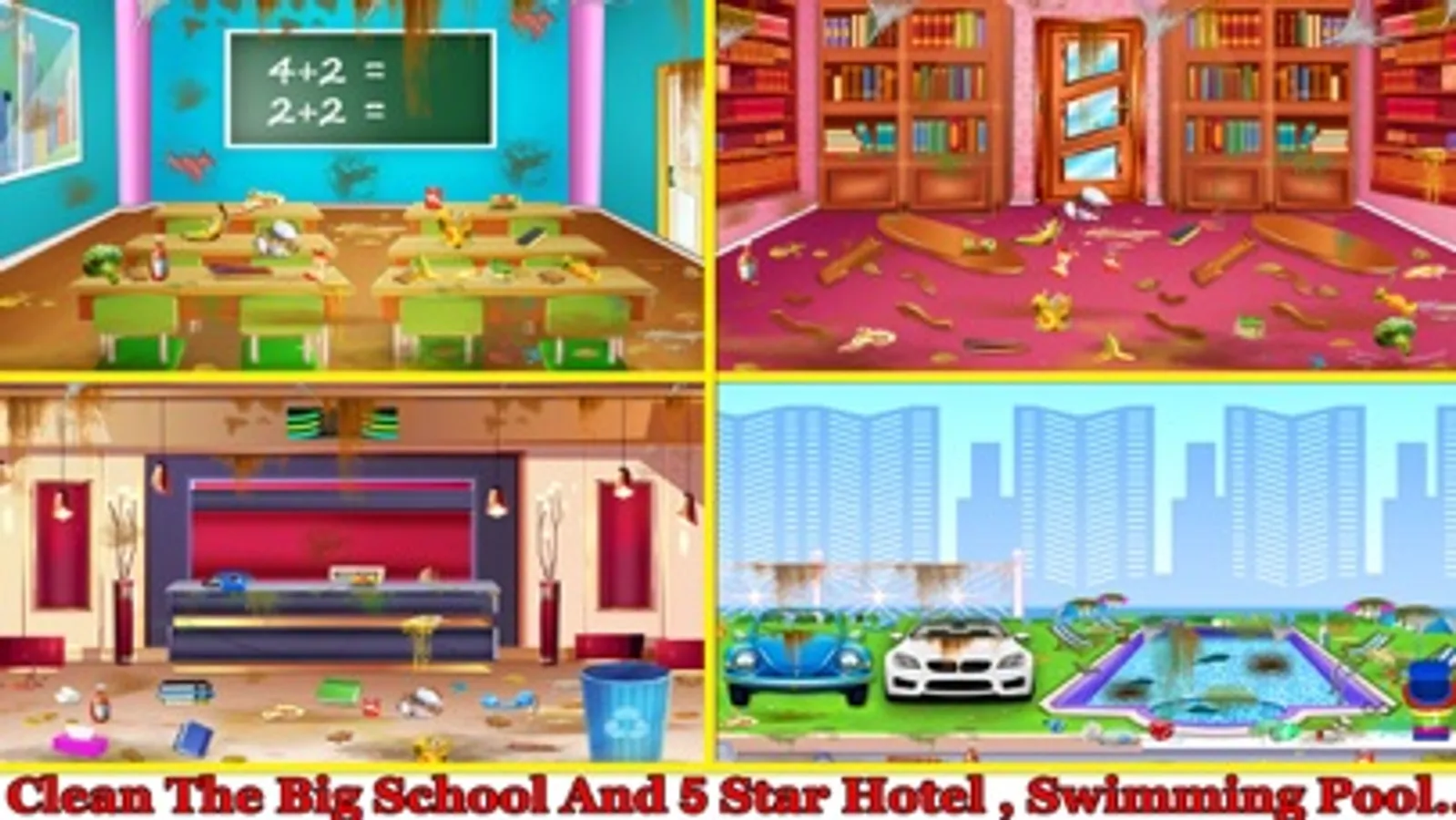Download Big City Cleaning-House Cleaning-Home Design Game right now and start cleaning a city, some of the best city cleaning games for free you’ve ever seen! Play this clean up game with many different cleaning activities such as first of all place all messy things at proper place and throw rubbish items in to dustbin. Then cleaning activity will start with removing spider nets, remove dust from walls by using water spray and towel. And at last clean floor by mop. This cleaning game includes rearrange the furniture, jigsaw puzzles, place toys and other things back on their place, restore walls etc.