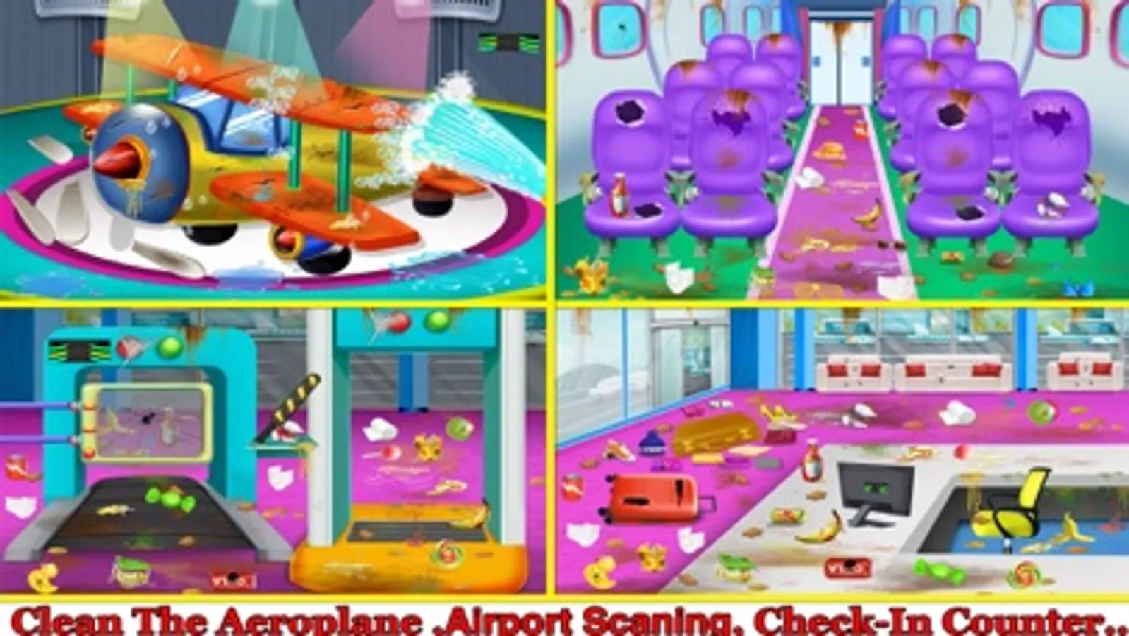 Everything is messed up in the airport ! Airplane is very dusty and have minor technical problems! Clean and repair the interior and exterior part of plane with step by step activity with many new interesting repairing tools.