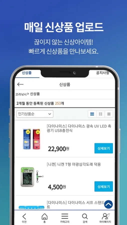 언제 어디서나 쉽고 간편하게 낚시용품을 구매가 가능하며 빠른 배송을 보장합니다.