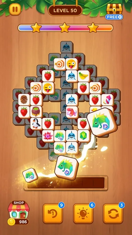 - Mahjong triple match: Simply tap on the tiles for them to be placed in the box. Match the same tile in triple to the box to clear them, when it has no tile on the table, you will pass the level.