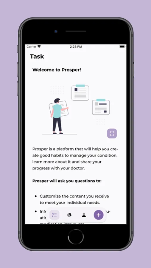 Prosper is to share daily vitals, symptoms, health surveys and other information about your condition with your doctor. Your care team can identify concerning trends early on and help you stay healthy.
