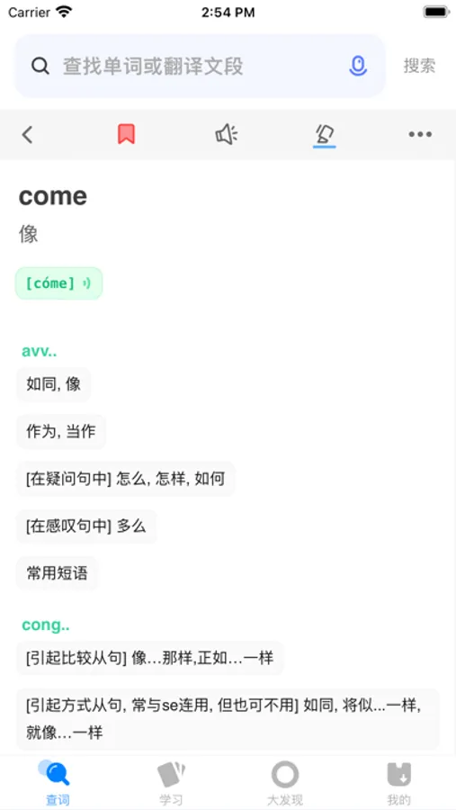 ‣ 在线翻译引擎, 轻松翻译例句和文段.