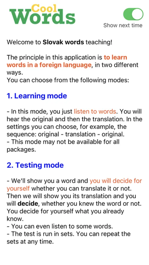 A unique application for learning Slovak vocabulary