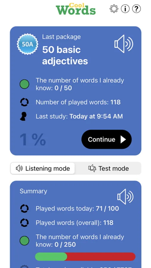 With this application you listen to the pronunciation of words spoken by a native speaker. You can verify for yourself if you know the word.