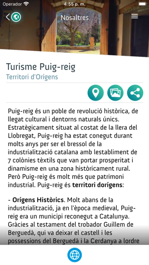 Amb la app de Turisme Puig-reig podreu descobrir els Orígens Rurals, Històrics, Industrials i Naturals del municipi. Una guía turística completa a la teva mà que et permetrà conèixer tots els recursos turístics e Puig-reig; les colònies industrials, museus, el Castell Medieval, la Torre Merola, les esglésies romàniques, rutes de senderisme i BTT, espais naturals, etc. A més, inclou el llistat de tots els allotjaments, restaurants i comerços de proximitat on poder comprar productes autèntics i locals.