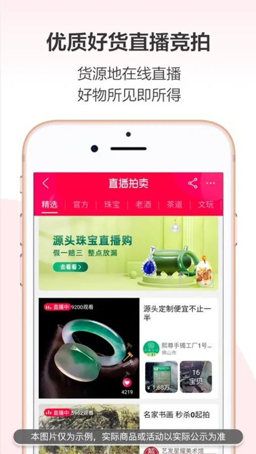● 源头优质商家和画廊:Gucci、LV奢侈品包包,A货翡翠,茅台老酒,醇香好茶,国风文玩,艺术收藏品。