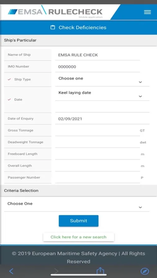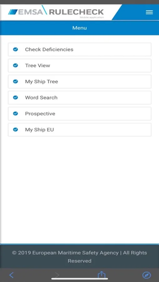 The content of the RuleCheck mobile application is the same with the version that users can access through EMSA’s portal and includes the following functionalities: