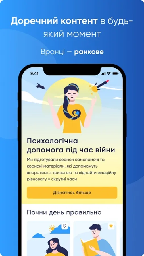 Розроблено фахівцями психологами на основі передових практик та надбаннях сучасної психології та психотерапії. Додаток виключно українською мовою.