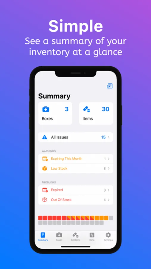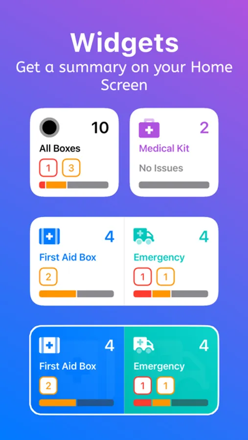 Home Screen and Lock Screen widgets provide an overview of your inventory at a glance.