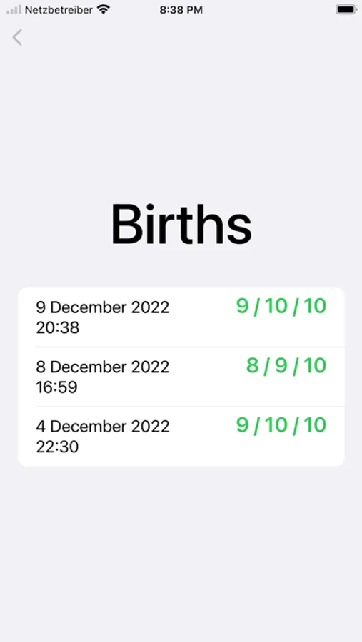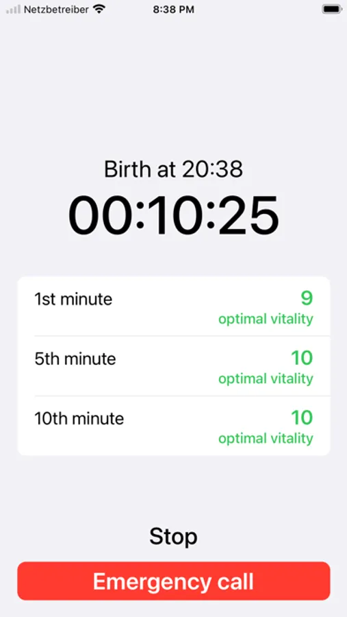 Similar to a stopwatch, APGAR Timer measures the time from birth. After the first, fifth and tenth minutes, a reminder is given to assess the clinical condition of the newborn in the form of the standardized Apgar score. When all three values are recorded, the birth is automatically saved for later consultation.