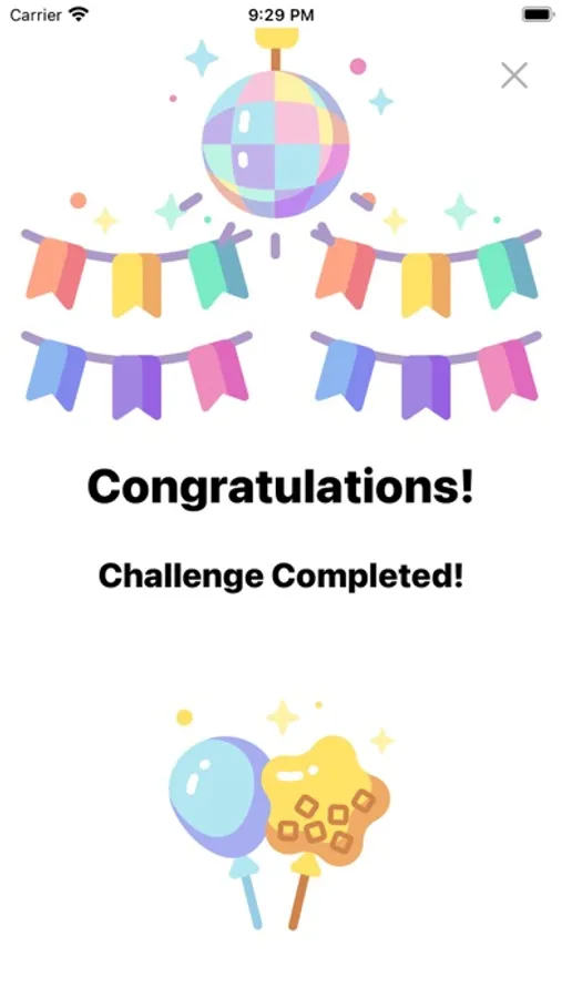 - 하트를 모두 채우면 스페셜 화면이 나타나요. "Scoit" 과 함께 챌린지에 성공한 스스로에게 축하해 주세요.