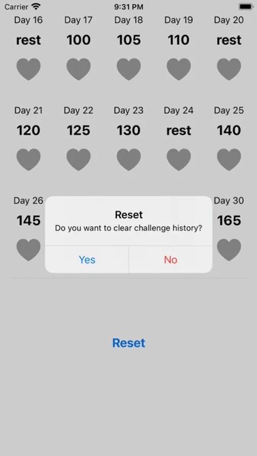 - 기록을 지우고 스쿼트 챌린지를 처음부터 다시 시작할 수 있어요.