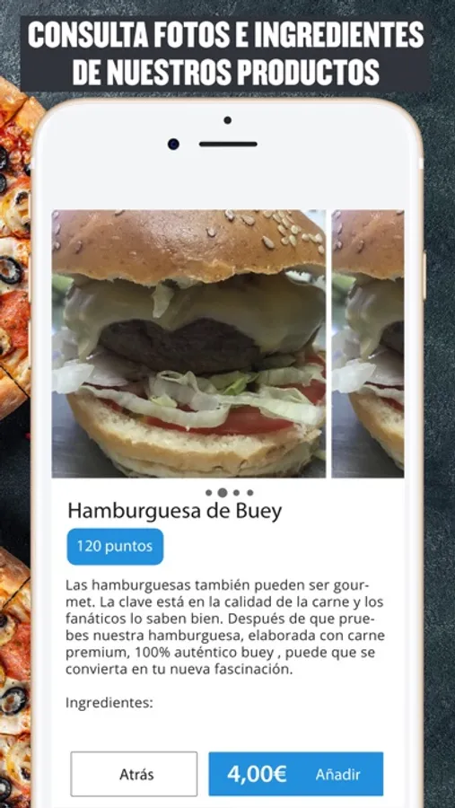 Descarga nuestra app, consulta nuestra carta y haz tu pedido para recoger, también hacemos reparto a domicilio.