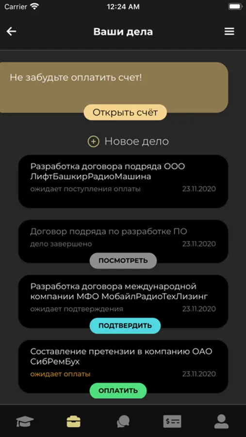 Больше не нужно звонить или встречаться в офисе. Вы можете не только загружать документы и создавать дела, но и общаться с юристом, следить за ходом дел и судов, а также пользоваться подробной базой знаний на любой случай.