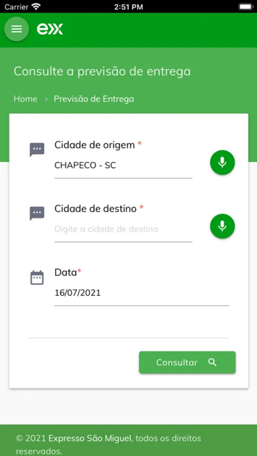 - Saber quanto tempo leva para a Expresso São Miguel entregar a sua mercadoria da origem até o destino, através do ícone “Previsão de entrega”;