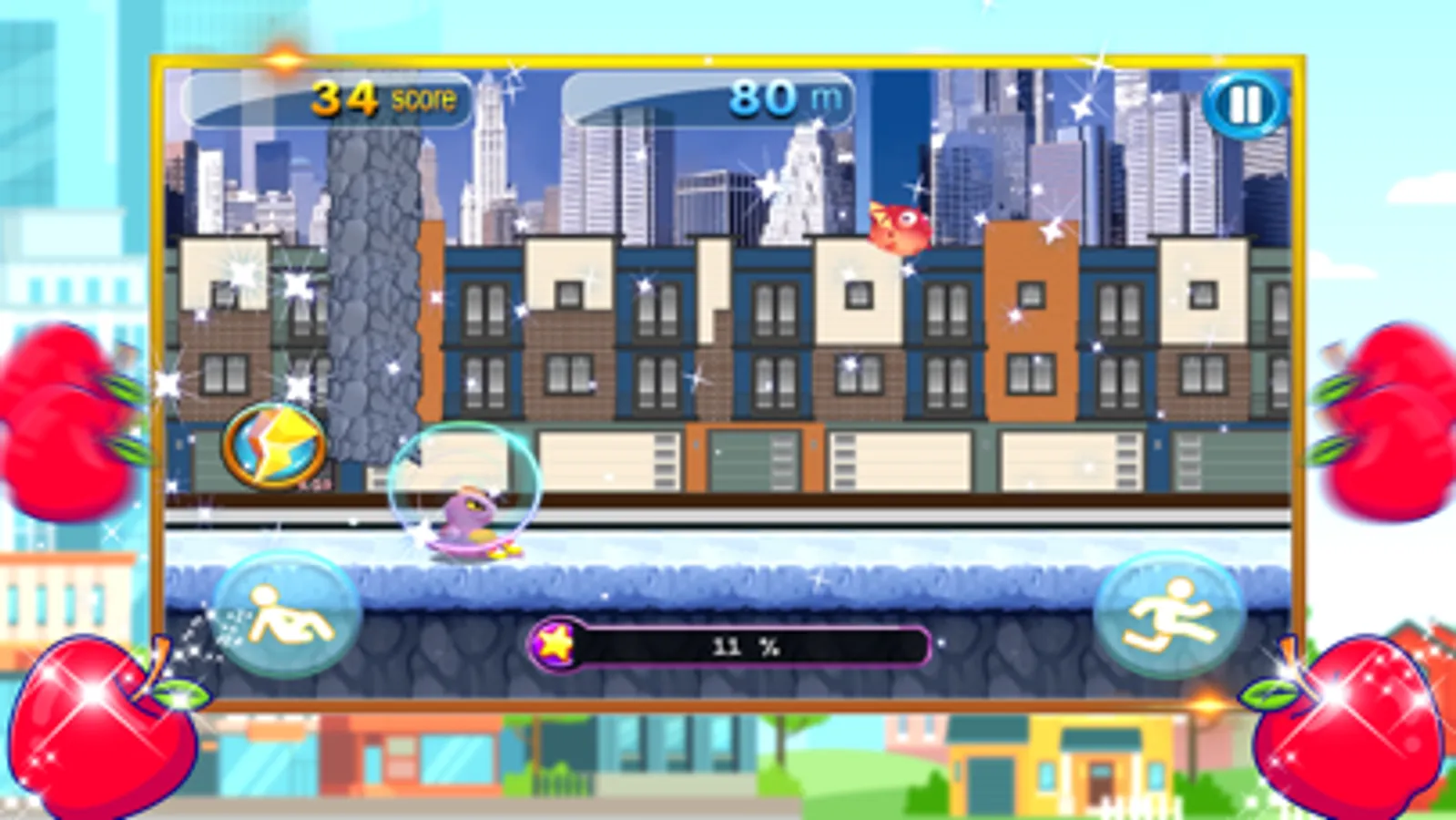 Surpass all stages to reach multiple worlds! Do not miss any fruit! The