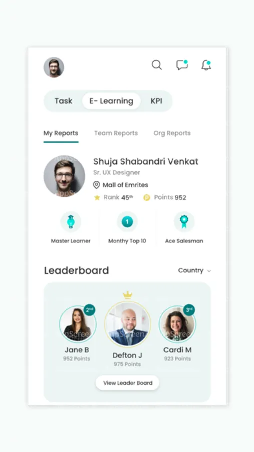 • Gamified Leaderboard - create excitement and motivation via internal competitions