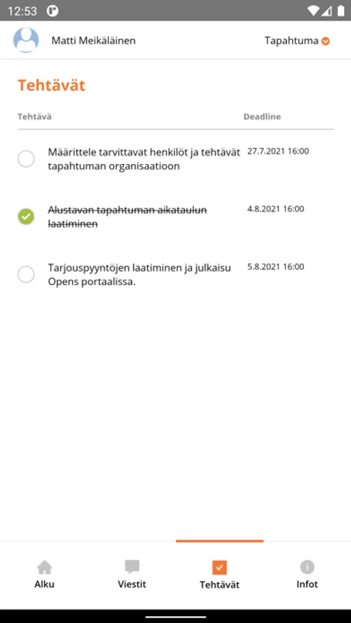 Mobile application for Opens system. Opens LiveAPP is a tool for event workers. Opens LiveApp allows event management to share documents required for work and assign users to their own tasks. Once the task is done, the person in charge can mark it completed. Event staff can communicate with each other. All messages, tasks and documents are stored in the event data.