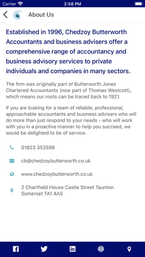 Established in 1996, Chedzoy Butterworth Accountants and Business Advisers offer a comprehensive range of accountancy and business advisory services to private individuals and companies in many sectors.