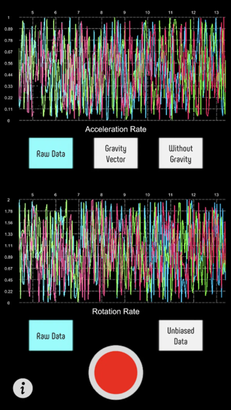 - Without Gravity (it shows acceleration vector without gravity vector)