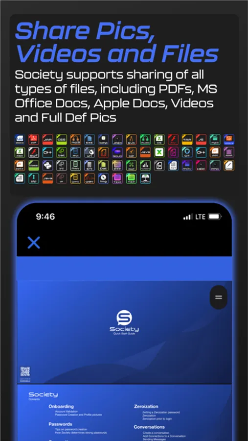SECURE: SOCIETY has the world’s most secure private chat built in. Using state-of-the-art encryption, SOCIETY keeps your chat messages secure while they’re in flight across the internet, at rest on your phone, and on the phones you send them to. SOCIETY also uses sophisticated layered AI systems to help keep your data private and secure.
