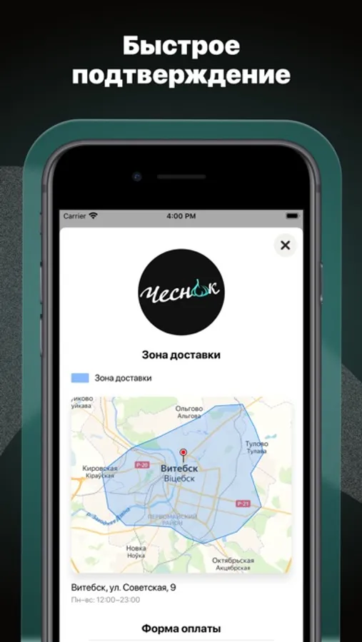 — Быстрый заказ с мгновенным подтверждением через приложение.