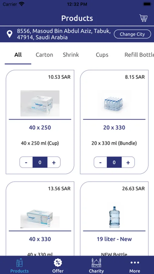 Download the Naba water app and order water bottles of different sizes, and you can pay in different ways (Apple Pay, Mada, Visa, MasterCard) and a delivery service within 24 hours as a maximum.