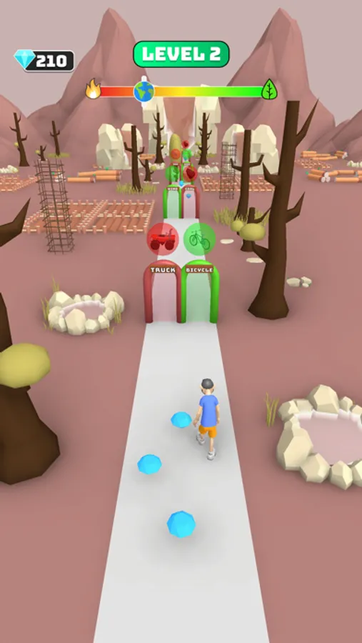 Choose between planting trees or cutting them down, riding a bike or riding a monster truck and shape the world as you desire.