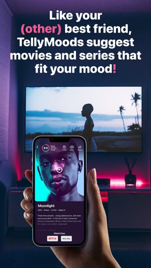TellyMoods is a smart recommendation service that allows you to define the user's mood, helping to find in no time which Movie or TV Series to watch across the different platforms such as Netflix, Prime Video, Disney +, HBO, Hulu, Apple TV+, and much more!