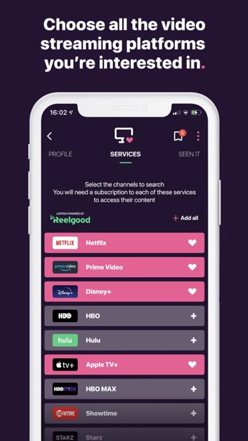 1) Create your profile and select the OTT video streaming platforms you are interested in.