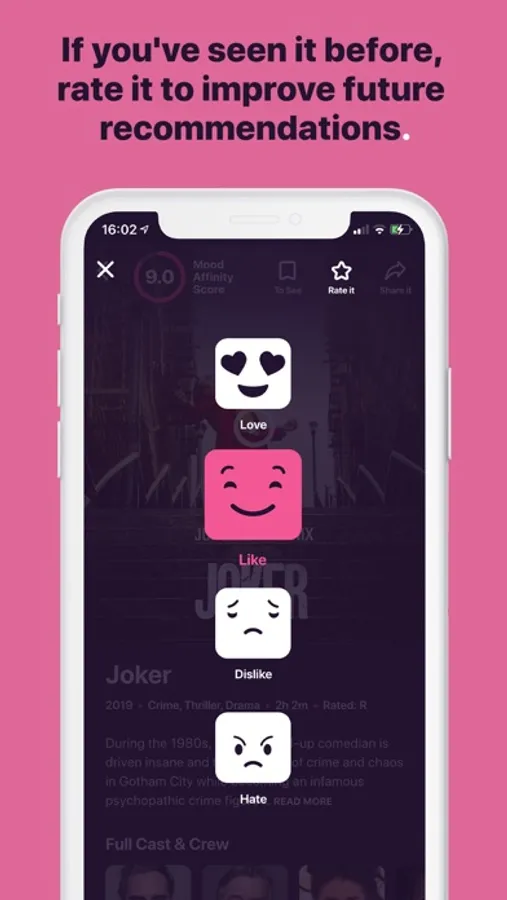 Like your well-curated playlists, your watchlist is filled with Movies and TV Series based on your different moods. Whenever we give you our recommendations, you can decide whether to watch immediately or bookmark them later. Our AI will also analyze your votes and learn to recognize the types and genres of your favorites.