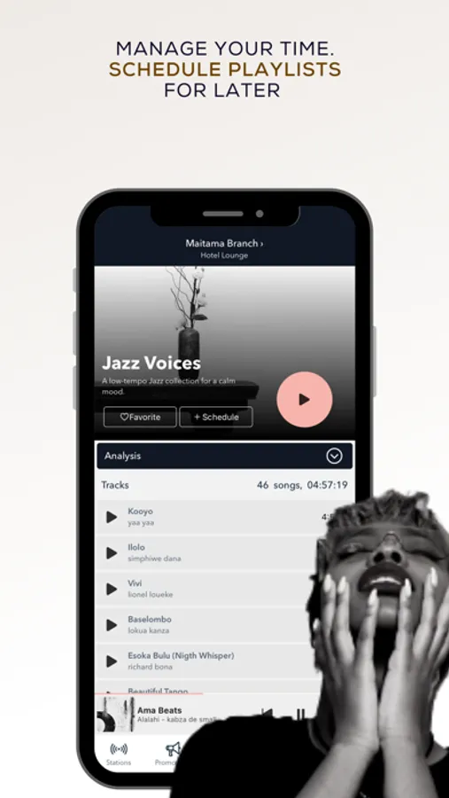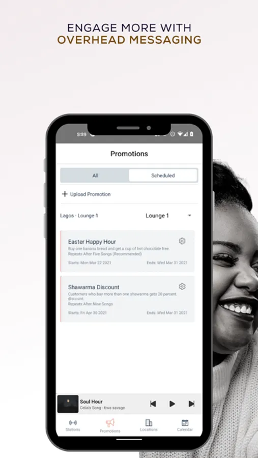 Stream expertly curated African music for your business and add your audio promotions for quick conversion.