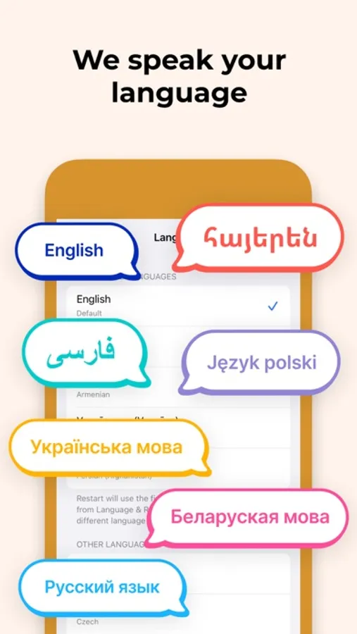 - View the app in English, Russian, Polish, Ukrainian, Armenian, Czech, Belarusian, and Persian.