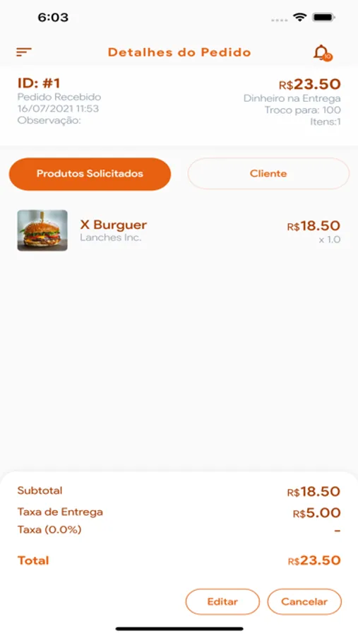 Controle seu funcionamento e receba os pedidos em tempo real.