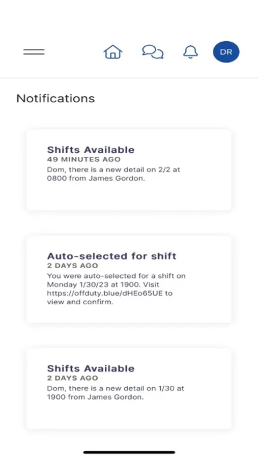 The Off Duty Blue Officer App allows officers to find details and manage their schedules easier than ever. Now with push notifications and in-app chat.