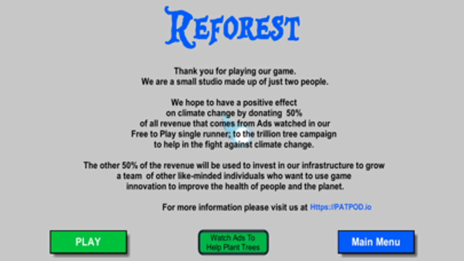 A Flappy-Bird single tap action game that tracks your high score and works to plant trees in the real world to help fight climate change.