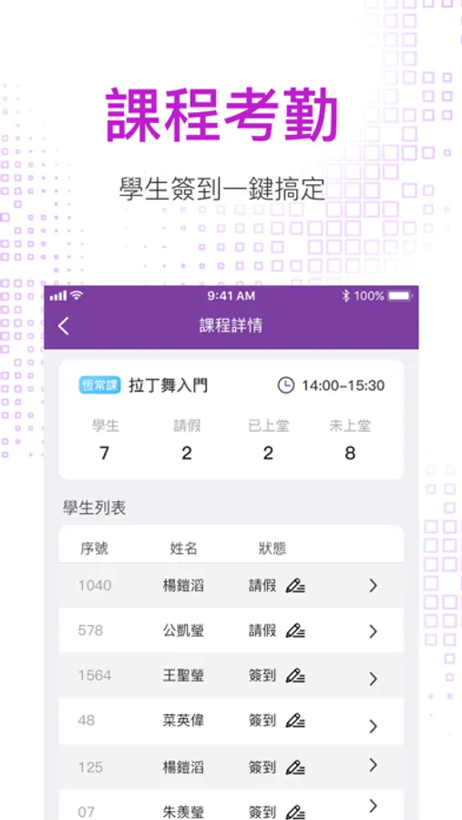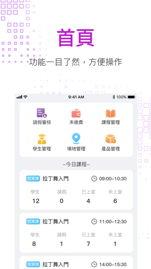 This App is mainly used for daily management of student course operations, including convenient and quick help for students to buy courses, manage students' class registration status, and quickly approve student leave applications. Through this App, it is convenient for school teachers to efficiently operate daily courses.