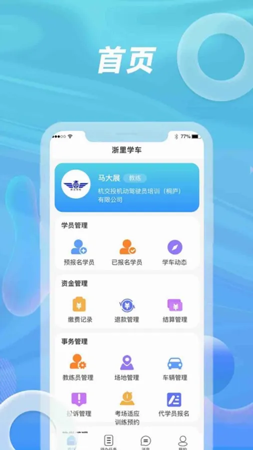 浙里学车驾校是一款集驾校校长、驾校业务员、驾校财务、驾校教练管理功能为一体的综合性APP。