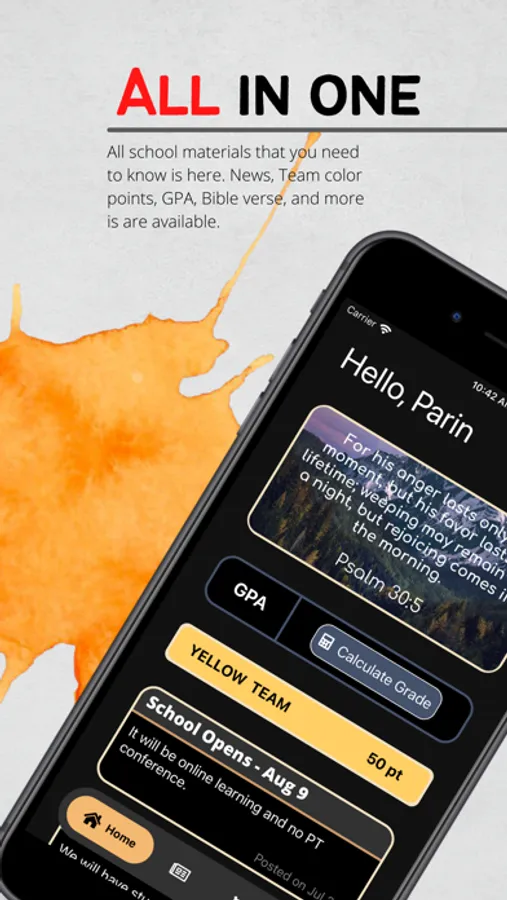With our intuitive Widgets dashboard, you can view the latest news, activities, and team color score all from one screen. The widgets dashboard also has our school's "Verse of the Week" allowing you to receive God's word! In the dashboard we also allow you to have a quick glance at your tasks/notes.