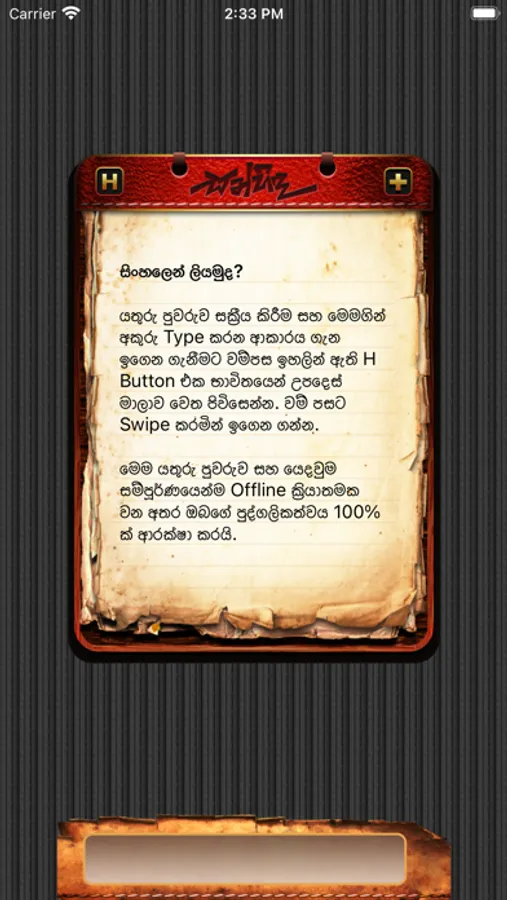 Sanhinda Sinhala Keyboard is a Sinhala Typing Helper app and Keyboard which has evolved since 2011 for over a decade. The typing pad is the premium version of the Sanhinda Sinhala Keyboard iPhone application.