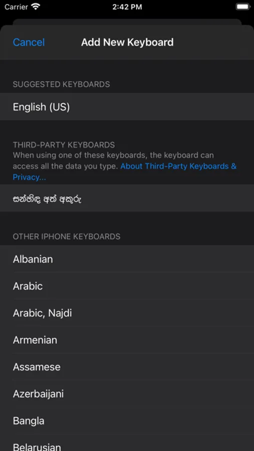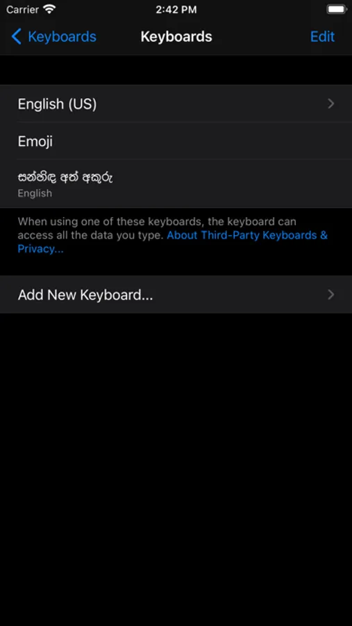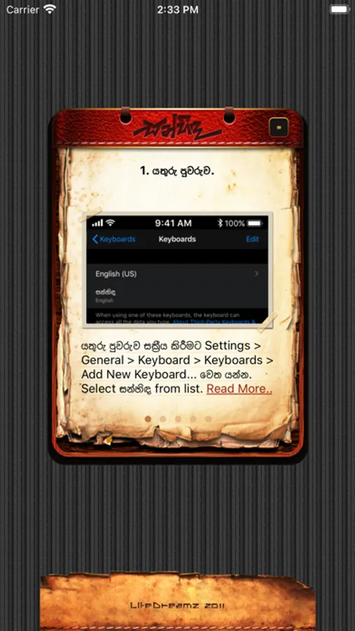- System-wide Sinhala Keyboard on iOS (Settings > General > Keyboard > Keyboards > Add New Keyboard...)