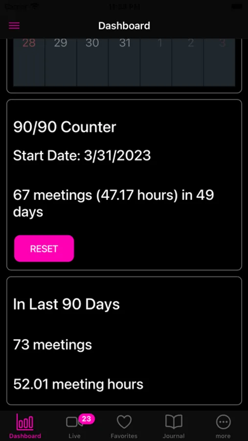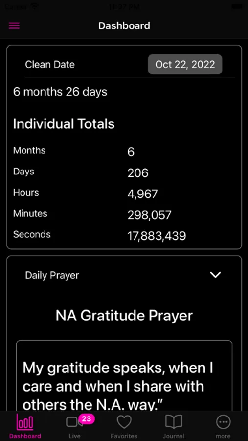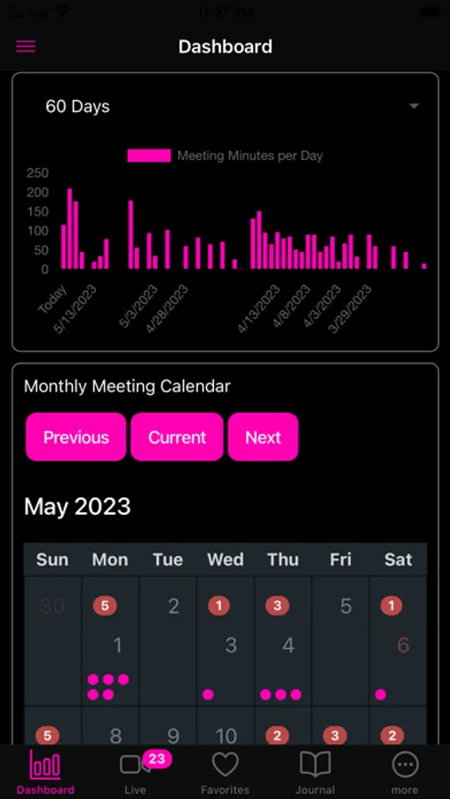 To further support your recovery journey, AA/NA Live! offers meeting reminders through push notifications. Never miss an important meeting again as our app keeps you informed and accountable. Additionally, our recovery dashboard provides essential tools, including a clean time counter, a 90 in 90 counter, a meeting minutes per day graph, and a monthly meeting calendar, empowering you to track your progress and stay motivated.