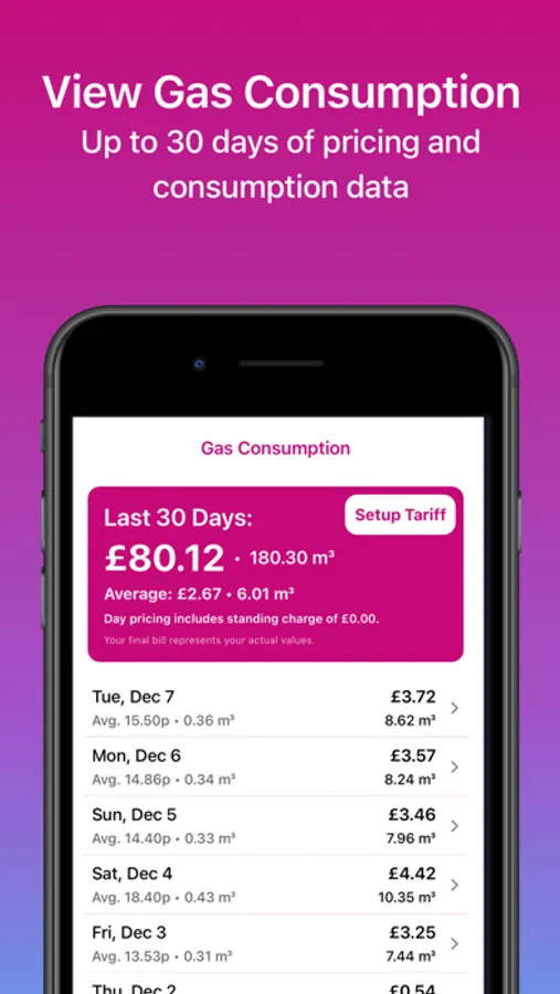 • View Gas Consumption - With daily pricing and consumption up to 30 days